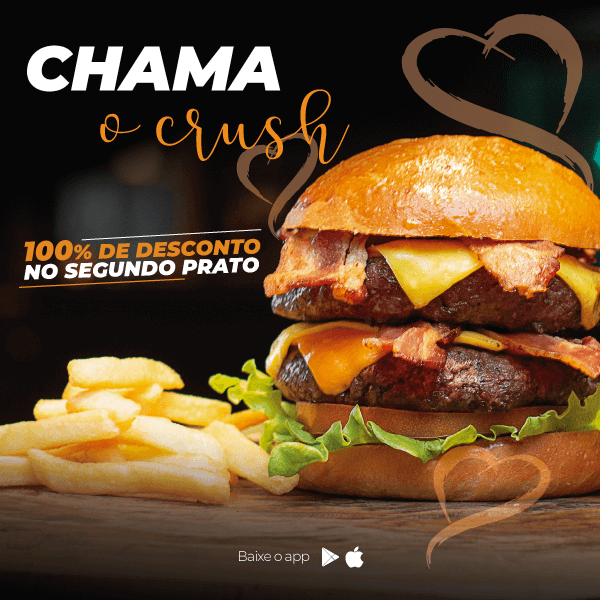 No estabelecimento basta o “taster”, apresentar o seu código promocional no ato do pagamento para garantir o desconto de 100% no segundo prato de igual ou menor valor.
