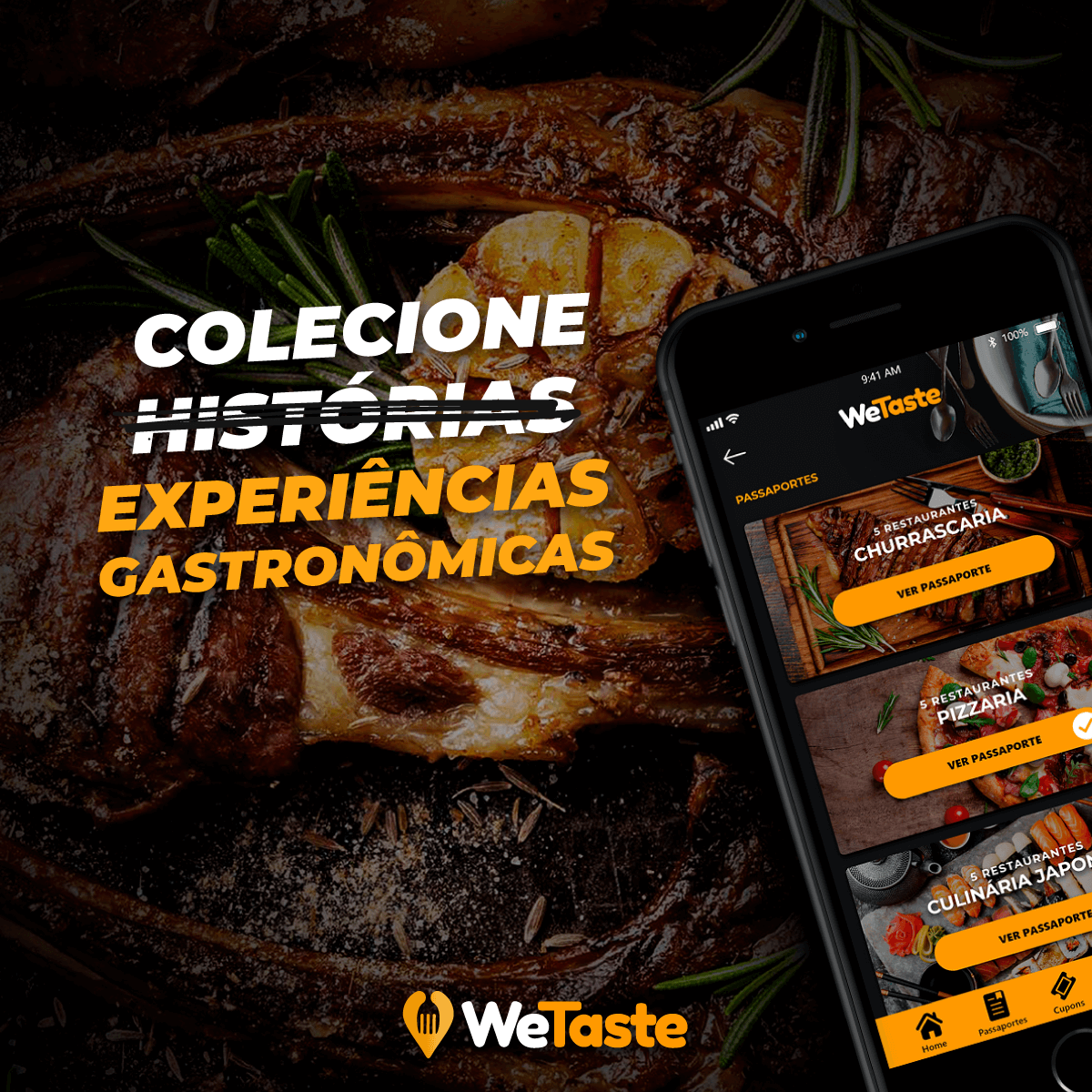 Baixe o app através do link www.wetaste.app/baixar. Antes de confirmar o pagamento, clique em CUPOM, digite TASTERCULT (pode ser todo em minusculo) e clicar em BUSCAR.