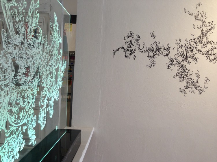 Apresentando obras de quatro artistas/professores de Ateliê do espaço, são eles: Alex Lettnin, Carla Borin, Carla Thiel e Jérôme Rehel, que mediante o olhar e a provocação do professor/curador da exposição Rodrigo Montero, escolheram um espaço da galeria para realizar uma intervenção. Cada artista respondeu a esta provocação, interagindo seus trabalhos com o espaço, iniciando com a Carla Borin, onde utilizou um local que a possibilitou experimentar os reflexos e transparências do vidro; passando logo para o Jérôme que através de seus desenhos automáticos, saiu do suporte convencional passando da parede para o acrílico; na passagem de uma sala para a outra Alex criou um túnel que faz com que penetremos num outro tempo, outra dimensão, utilizando simplesmente lonas em tiras; já a artista Carla Thiel, utilizou o jardim de inverno e criou um jardim suspenso, onde móveis do cotidiano estão expostos em níveis diferentes e plantas estão invertidas.