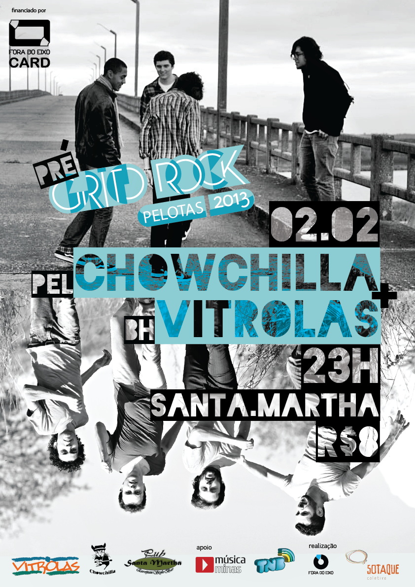 Na noite do dia 2 de fevereiro o Sotaque Coletivo vai realizar uma noite Pré-Grito Rock que terá as bandas Chowchilla de Pelotas e Vitrolas de Minas Gerais.