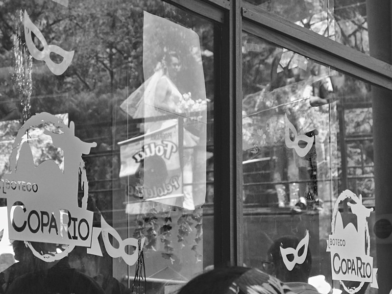 Reflexo de uma noiva na vidraça do Boteco Copa Rio (16/02 – 13:13 horas)