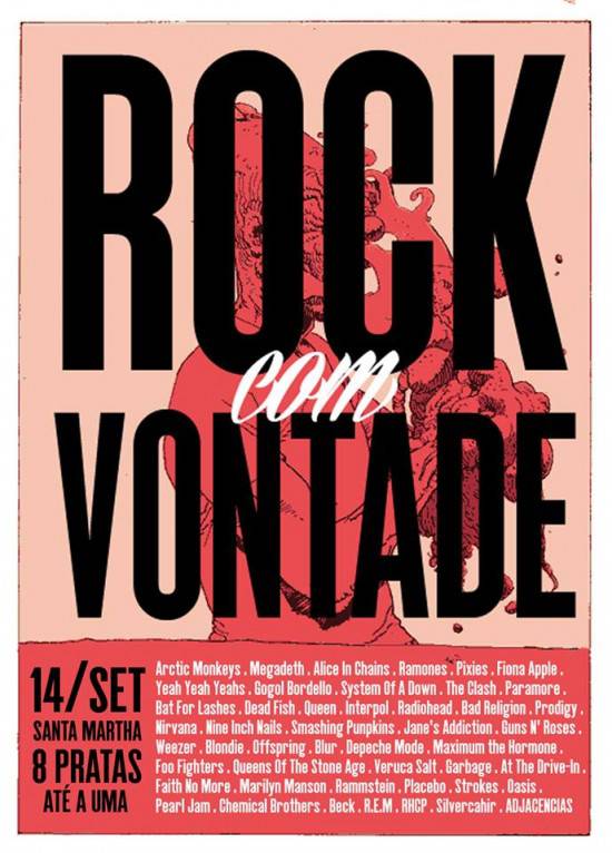 Quem andava sentindo falta de uma festa voltada inteiramente pro rock, daquele que dá pra dançar, pular e gritar, pode se preparar. No próximo sábado, dia 14, tem Rock Com Vontade, a festa. De Queen a Arctic Monkeys, de Blur a Megadeth, só bandas que não usam terno bege. Na Cervejaria Santa Martha, rua Dom Pedro II, 706. R$ 8,00 até a 1h. Mais informações na página do evento no Facebook.